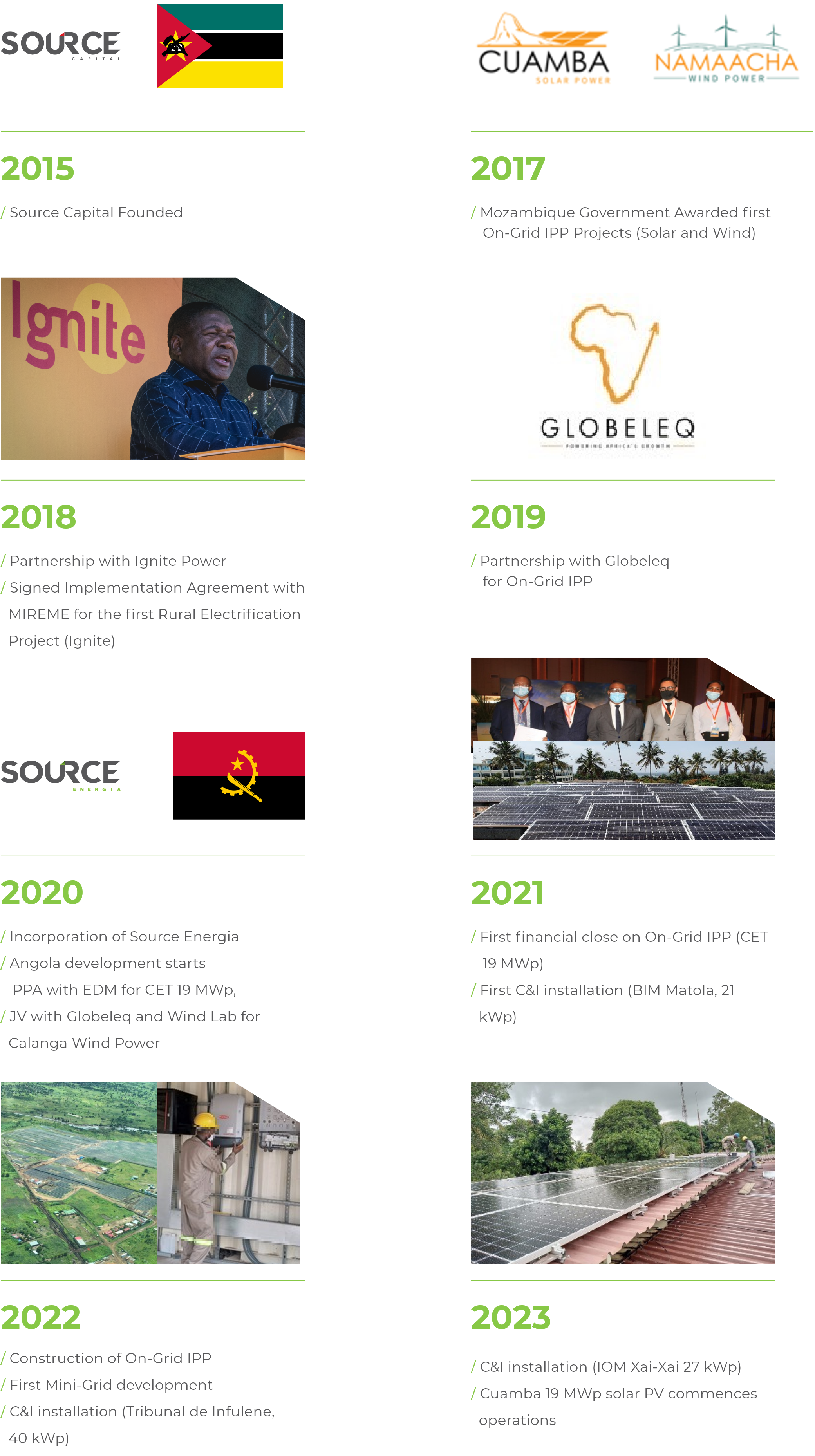 / Incorporation of Source Energia / Angola development starts PPA with EDM for CET 19 MWp, /JV with Globeleq and Wind Lab for Calanga Wind Power